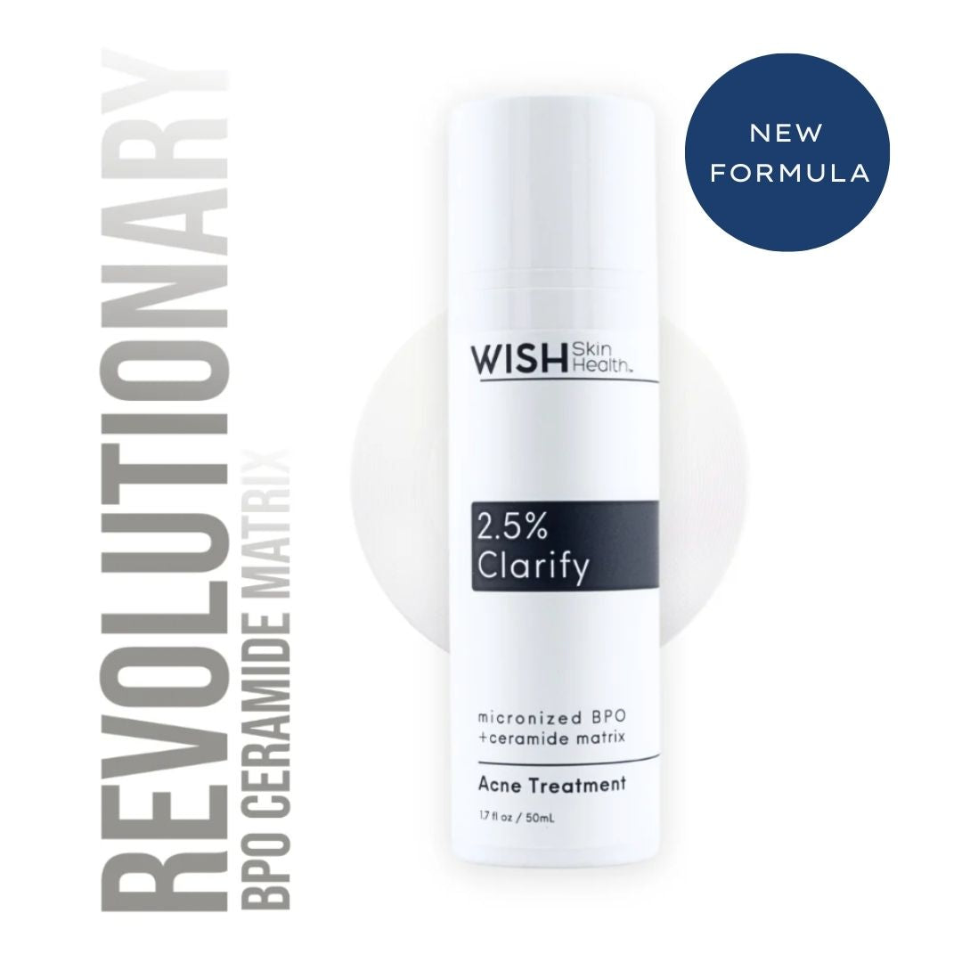 To make the most of Clarify, we recommend using it in accordance with your certified WISH•PRO's guidance. The formulation is truly one-of-a-kind and will benefit even those who have been too sensitive for Benzoyl Peroxide application in the past.